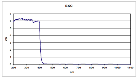 前回はOD値の話をする前で話を終えましたので今回はそのつづきからです。 OD値とはOptical Densityの略で日本語では光学濃度と直訳します。濃度という割には透過率を示す数値になっているのでちょっとややこしい面を持っていますが・・・濃度が濃い=透過率ということなのでしょうね。あまり深く考えずに“OD値が高いほど安全”と覚えておきましょう。 OD値と透過率には表のような決まり事となっています。 つまりOD値が大きいほど指定された波長の透過率が低くなる=レーザー光がフィルターでブロックされる=安全性が高くなると言うことです。単純に考えるとOD1よりもOD5の方が安全性が高いと言うことです。OD値は単純に波長と数値、例えば 【200nm-400nm=OD5】と書かれている場合もありますが、図のようなグラフで表示されている場合もあります。この図の場合400nm以下の紫外線はOD6となっており透過率0.0001%以下となります。しかし400nm以上の可視光-赤外線領域はOD値がほぼ0になっているのでほとんどの領域で光が透過しているということを示しています。つまりこのフィルターを使用したゴーグルは紫外線しか発振しないエキシマレーザーへは使用可能ですが、グリーンレーザーや赤外線レーザーには意味をなさないということになります。