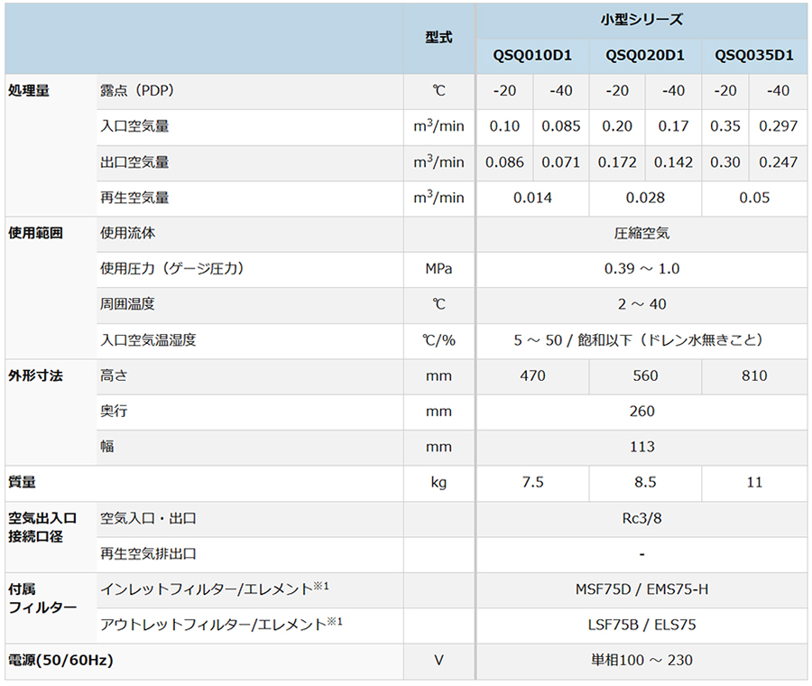 モデル名|吸着式圧縮空気除湿装置 QSQシリーズ